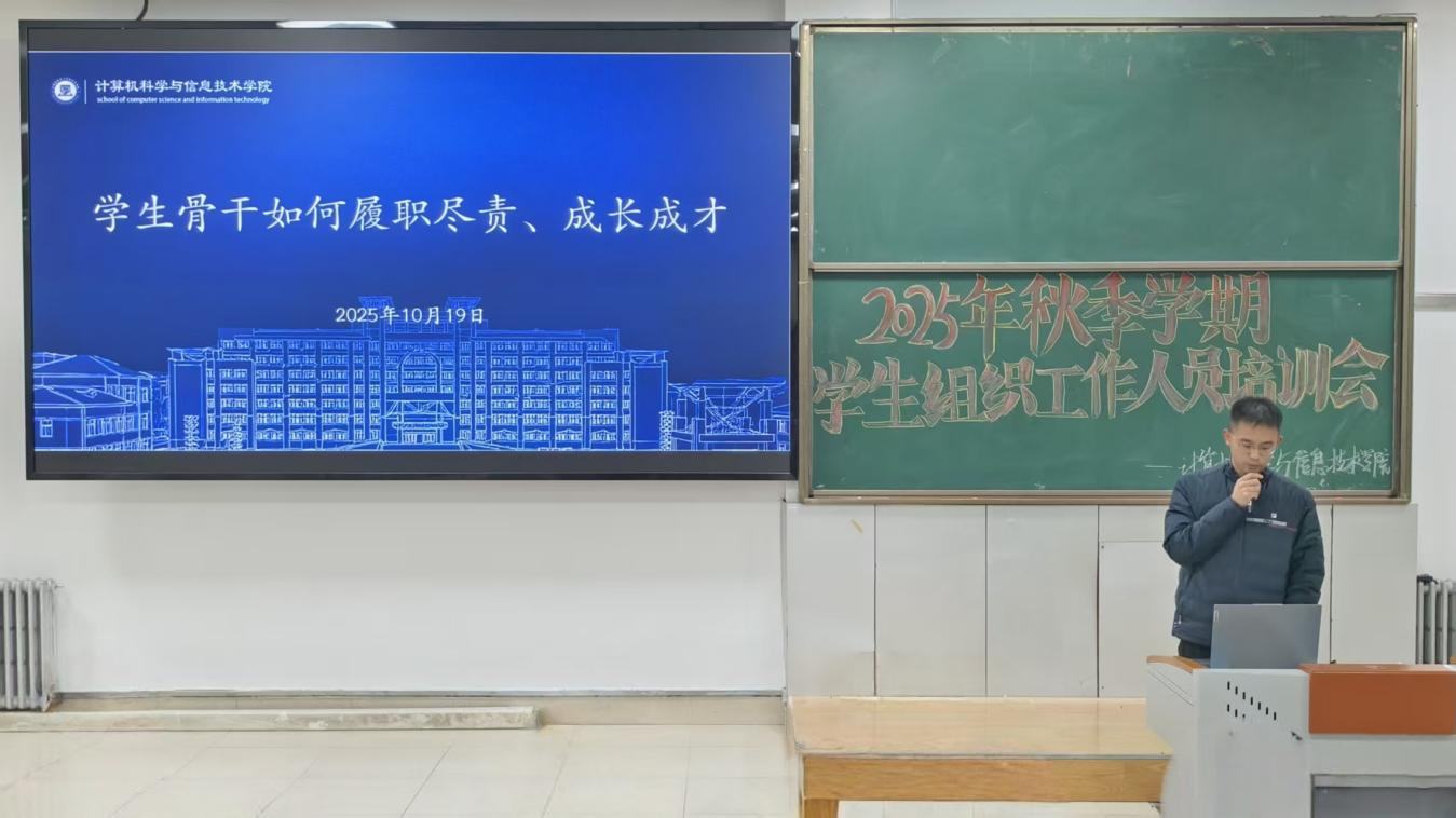 本次学生骨干培训会的召开,有效提升了学生骨干队伍的整体素质,激发了学生骨干的工作热情,展现了团结奋进的精神风貌。未来,学院将持续推进学生骨干培养工作,不断完善育人机制,为学生成长搭建更广阔的平台,共同谱写计算机科学与信息技术学院学生工作的新篇章。(一审:刘烁 二审:苏鸿鹏 三审:刘彰基)