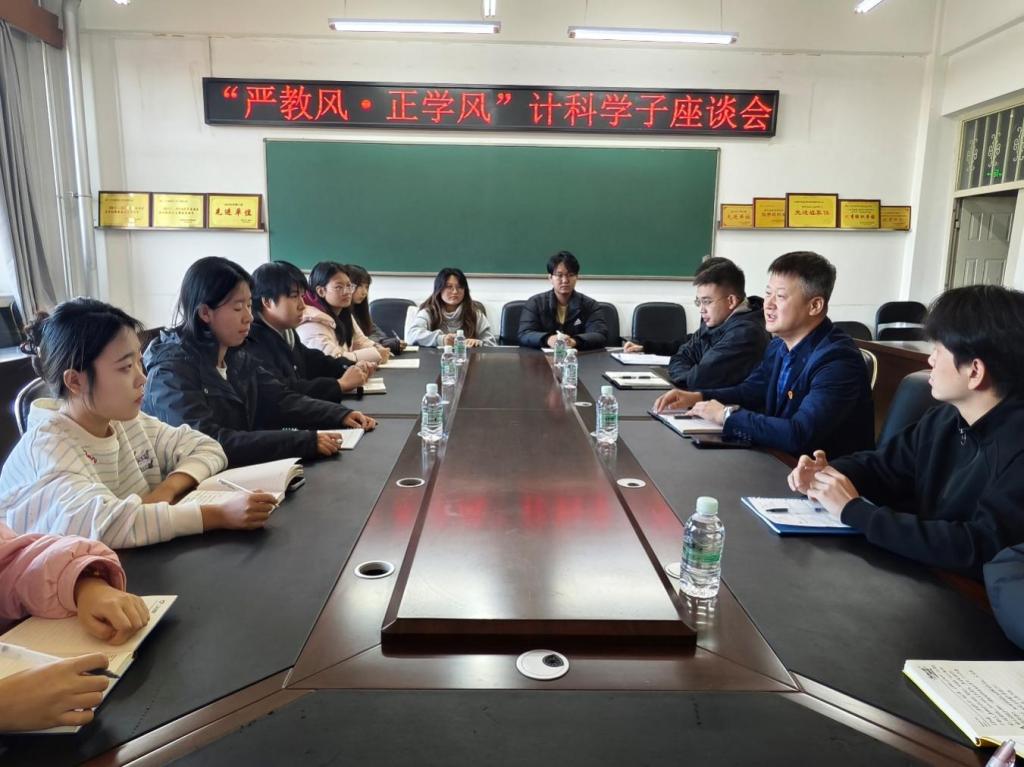 为确保“严教风·正学风”的工作要求扎实推进、有效落实,助力大二学生攻克学业重难点,提升专业素养。10月30日,计算机科学与信息技术学院在417会议室召开“严教风·正学风”计科学子座谈会。党总支副书记刘彰基、学生工作办公室副主任苏鸿鹏、2024级辅导员闫令文及2024级全体学生骨干参与会议。