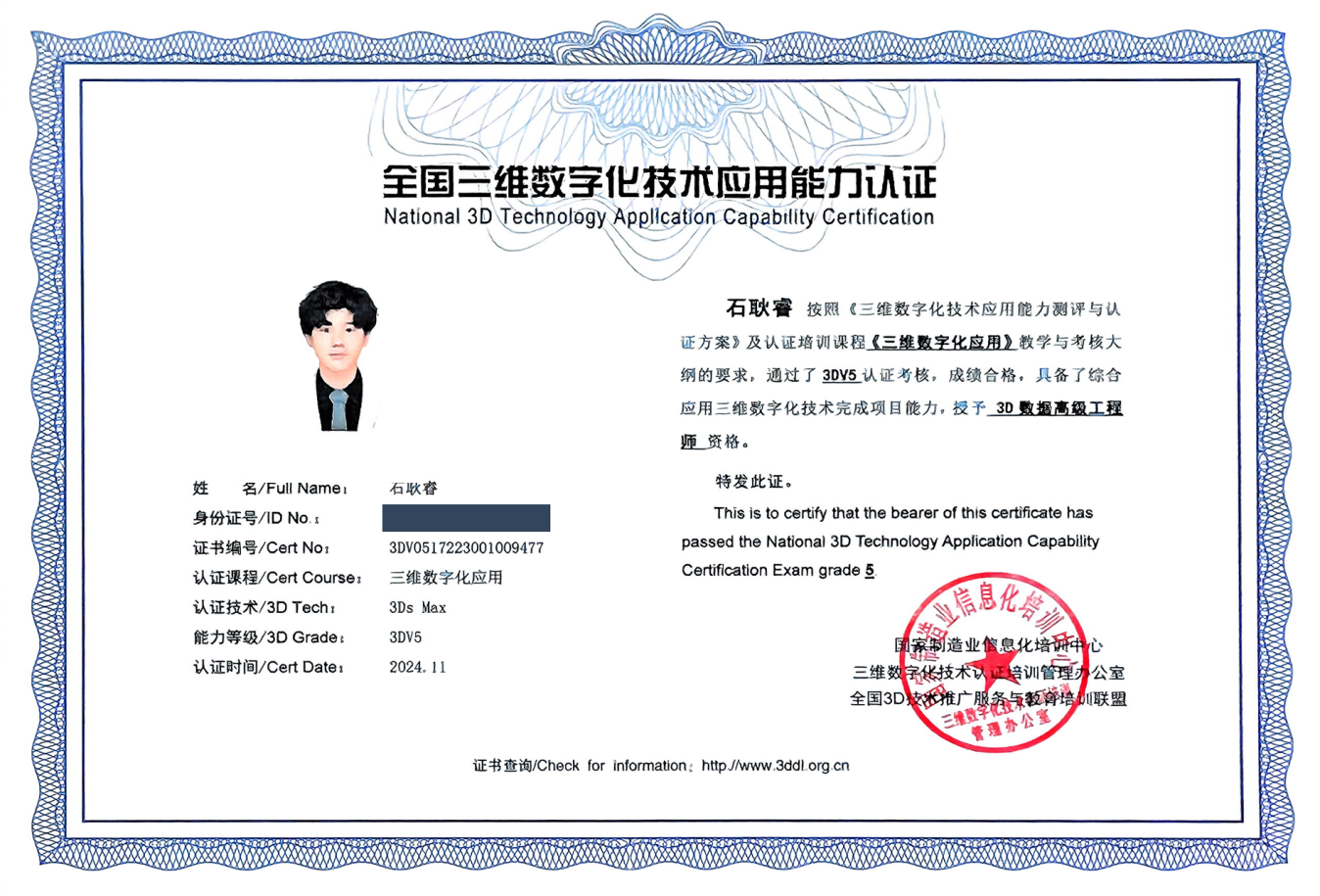 在学习上主动规划学业与职业方向,成绩稳居专业前列,在校期间90分以上科目33门,95分以上科目15门,曾获各类奖学金。积极参与学科竞赛、创新创业项目,获得国家级奖项2项,省级奖项9项,立项省级大学生创新创业项目2项,发表学术论文1篇,通过全国三维数字化应用能力认证3dv5。