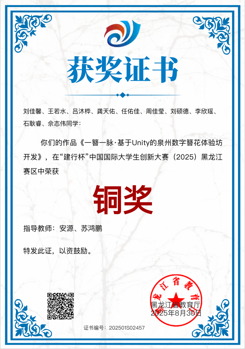 2025年“建行杯”中国国际大学生创新大赛省赛银奖