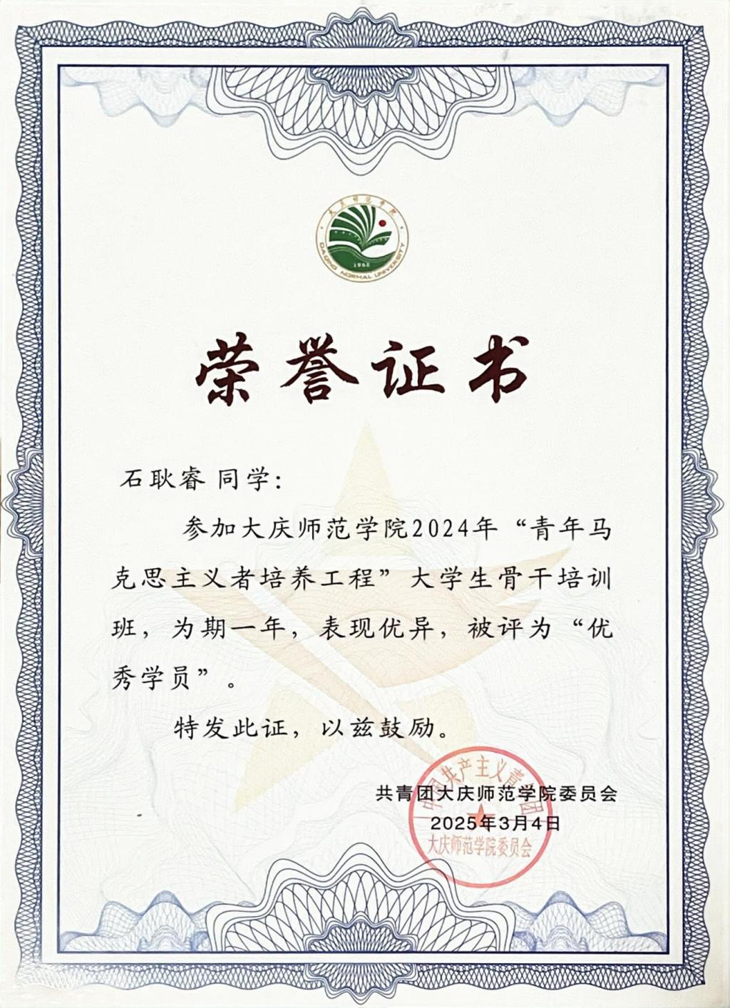 2025年大庆师范学院第四期“‘青马工程’培训班优秀学员”