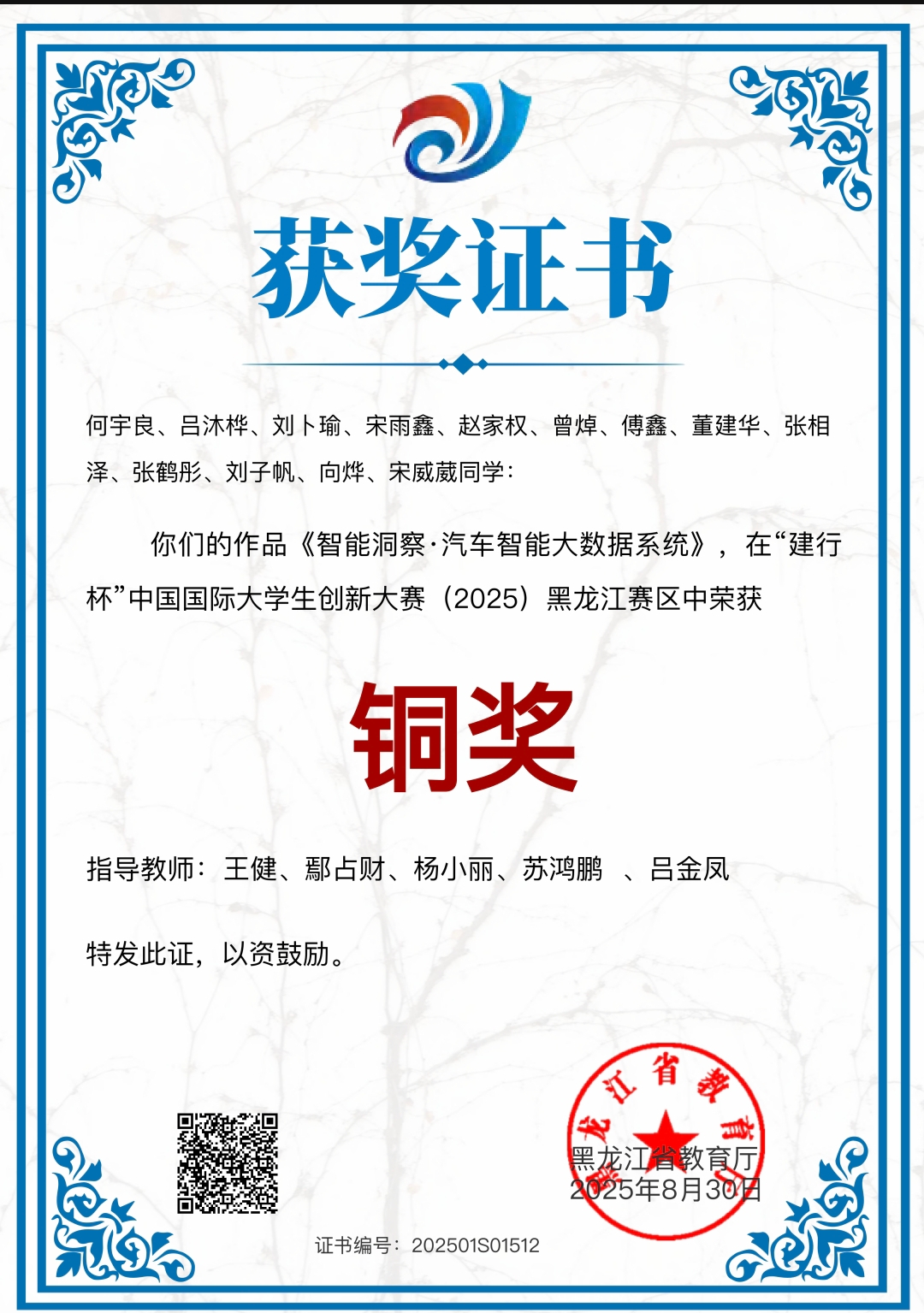 2025年“建行杯”中国国际大学生创新大赛(2025)黑龙江赛区铜奖