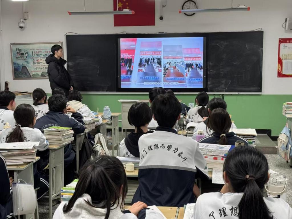 为响应招生宣传号召,2025年寒假我回到高中母校开展宣讲实践。站在熟悉的讲台,我通过实景图片向学弟学妹们展示大学校园风貌,用亲身经历拆解升学备考方法、解读专业特色。作为庆师学子,我以学长视角传递求学经验,搭建起母校与大学间的沟通桥梁,在助力学弟学妹明晰成长方向的过程中,体会到反哺母校的责任与价值。
