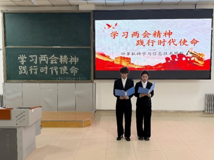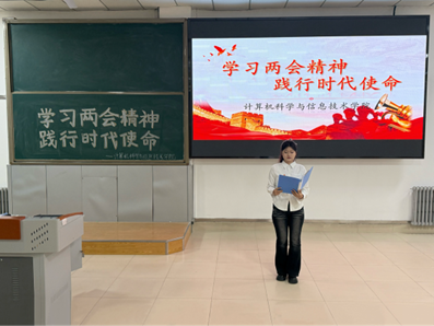 为深入学习贯彻全国两会精神,引导学生党员把思想和行动统一到党中央决策部署上来,3月8日至13日,计算机科学与信息技术学院学生党支部开展学习全国两会精神系列活动,推动学生党员在深学细悟中筑牢信仰根基,在知行合一中提升政治素养,切实把两会精神转化为奋进前行的强大动力。