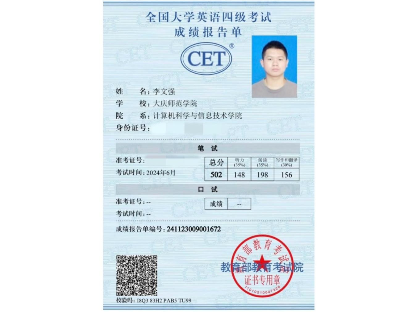 李文强,计算机科学与信息技术学院软件工程专业学生,以初试338分、专业排名第七的成绩被南昌航空大学软件工程专业录取,攻读硕士学位。在校期间,专业成绩位列前茅,共计15门课程成绩达90分以上,曾荣获“铁人式优秀共青团员”等荣誉称号。具备扎实的英语能力,大学英语四六级均以高分通过。