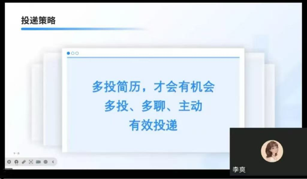 最后,李爽同学结合详实数据,为同学们系统梳理了求职竞争中脱颖而出的关键路径。从立足自身做好长远生涯规划,到精准匹配岗位用心打磨简历,再到掌握技巧灵活应对面试、脚踏实地稳步积累实习经验,提供了清晰可落地的求职方法,有效缓解了同学们的就业焦虑,拓宽了职业发展视野。