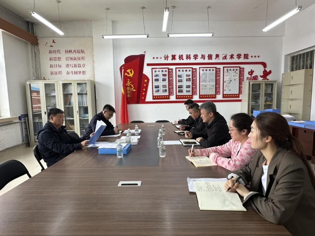 滕强仔细查阅学院学习教育相关材料,了解学院一体推进学习研讨、查摆问题、整改整治、建章立制、开门教育等工作进展情况,围绕扎实推进学习教育及相关工作进行交流。就贯彻落实学校党委部署,扎实推进学习教育提出三点要求:一是持续强化理论学习,通过“第一议题”、党总支理论学习中心组跟进学习习近平总书记关于政绩观的重要讲话和重要指示精神,指导党支部及时通过党员大会、党课开展学习,推动理论学习走深走实;二是加大问题查摆整改力度,要对标对表上级要求,结合学院和个人实际深入查摆问题,坚持立行立改、边学边改,推动问题整改到位;三是凝聚师生党员合力,要坚持党建与业务深度融合,谋划好学院“十五五”发展规划,确定好学院承接的学校2026年重点任务并有序推进,切实推动学院高质量发展。